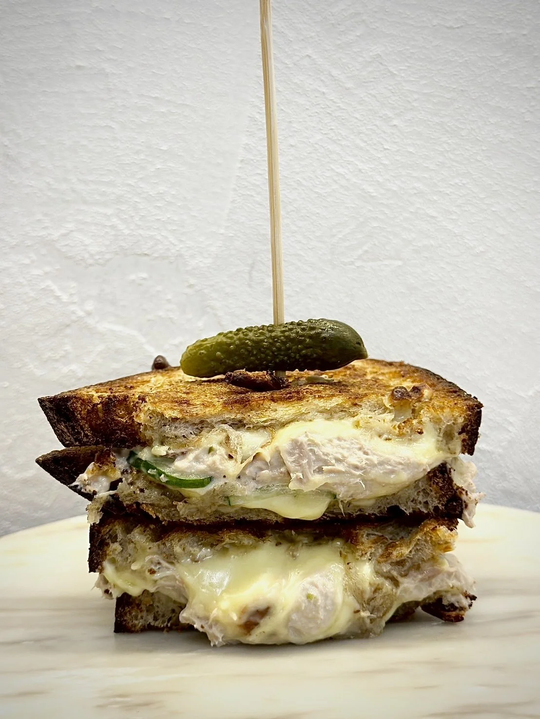 Toasted sourdough,jalapeno-pickle onionmayonaise, cheddar cheese, japanes cucumber