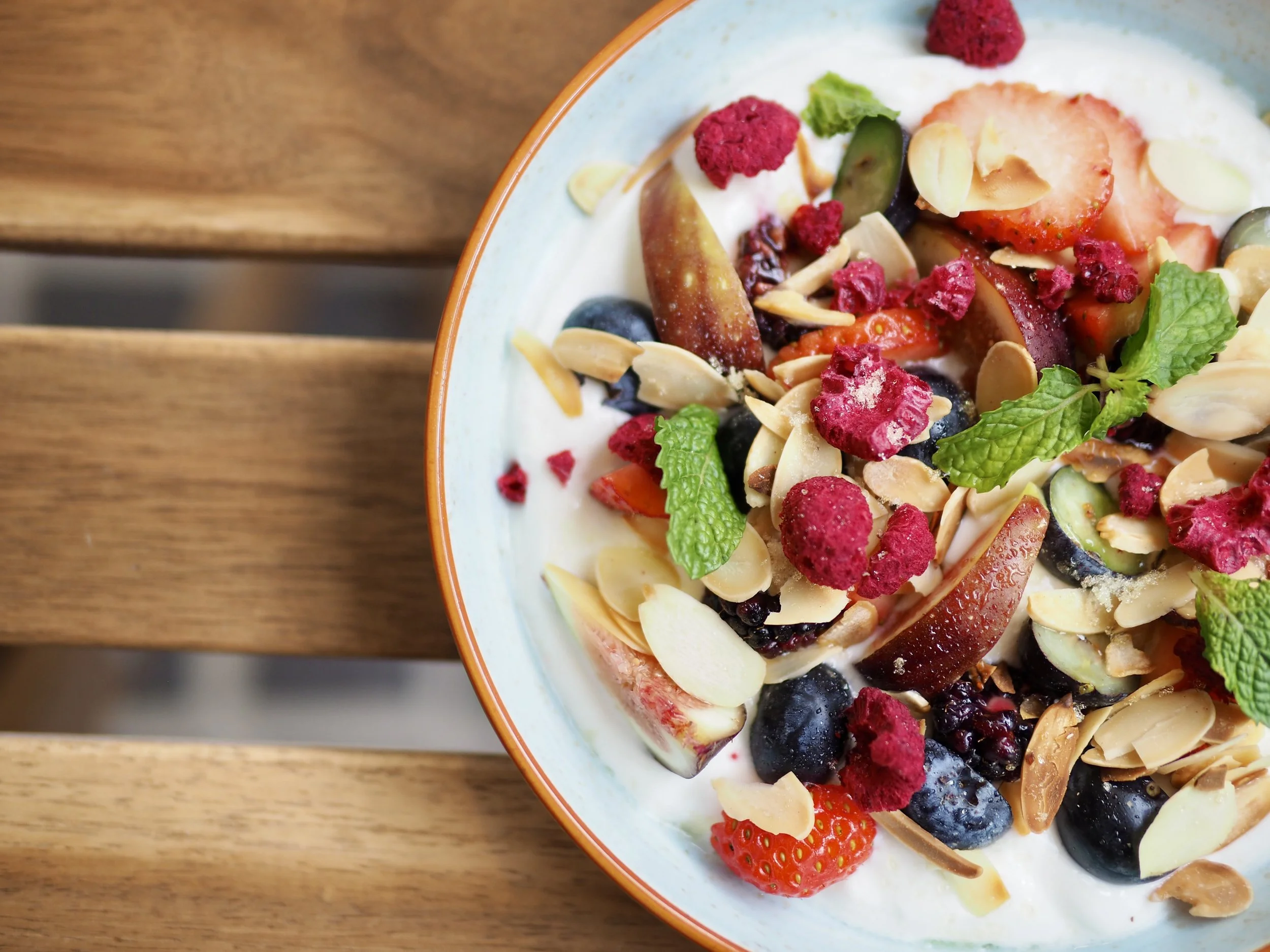 Fresh fruit and granola and organic honey